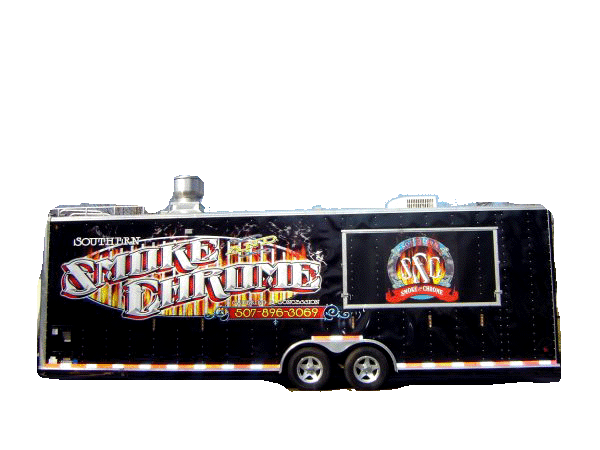 | Southern Smoke and Chrome Catering and Concessions is a family owned and operated business. We have two mobile trailers. Our larger trailer is equipped with a full size self- contained commercial kitchen that is perfect for catering. The other trailer is smaller and useful for concessions and auctions. The full size self-contained commercial kitchen in the larger trailer includes: • Double convection oven • Commercial stove • Double door refrigerator • Refrigerated prep table • 3 compartment commercial sink • Multiple prep areas • Soft drink cooler We are able to cook all food on site. We have generators if electrical hook-ups are not readily available. We have a portable grill that is an asset when catering outdoor events. Southern Smoke and Chrome has catered many weddings ranging from simple and economical menus to the more elaborate fare. We have also catered community fund-raising events, company parties or picnics, graduation parties, rehearsal dinners, and athletic banquets. No catering job is too large or too small! Please feel free to contact us with any and all questions. We are always here to help! |